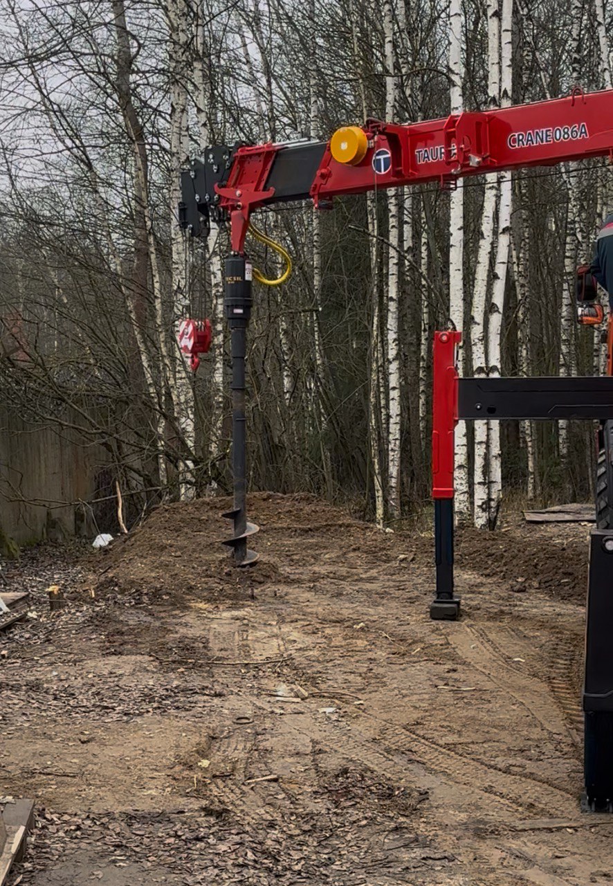 Монтаж винтовых свай спецтехникой в труднодоступных местах в Пушкино